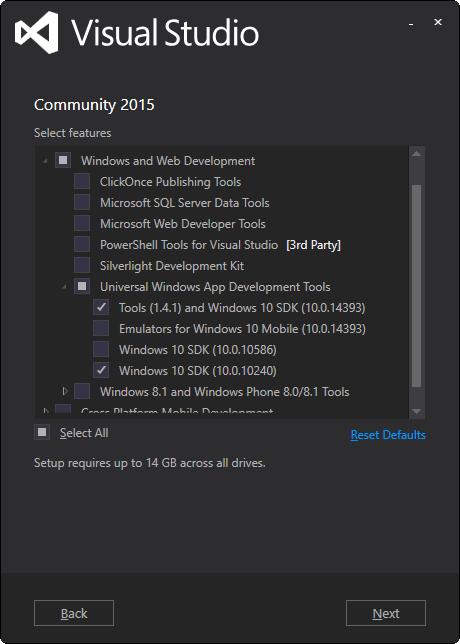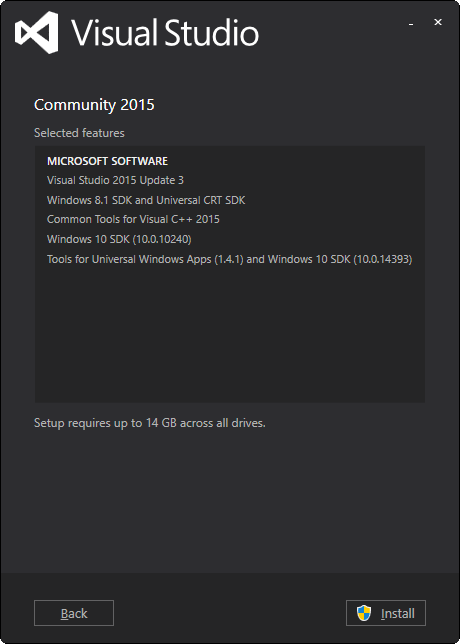 1. Visual Studio 2015 Community Edition Update 3 w. Windows Kit 10.0.10240.0:用于其 C/C++编译器(而不是 IDE)和 SDK,选择该确定的版本是因为 CUDA 8.0.61 所支持的 Windows 编译器.