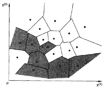 特征空间中,对每个训练实例点 $x_i$,距离该点比其他更近的所有的点组成一个区域,叫做单元(cell);每个训练实例 点拥有一个单元,所有训练实例点的单元构成对特征空间的一个划分。
